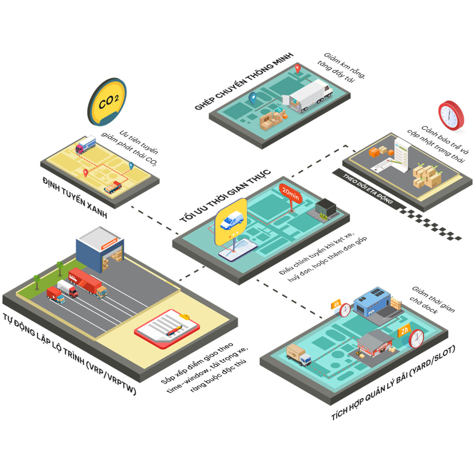 ETA chính xác; giao đúng time-window; giảm 30% cuộc gọi CSKH.